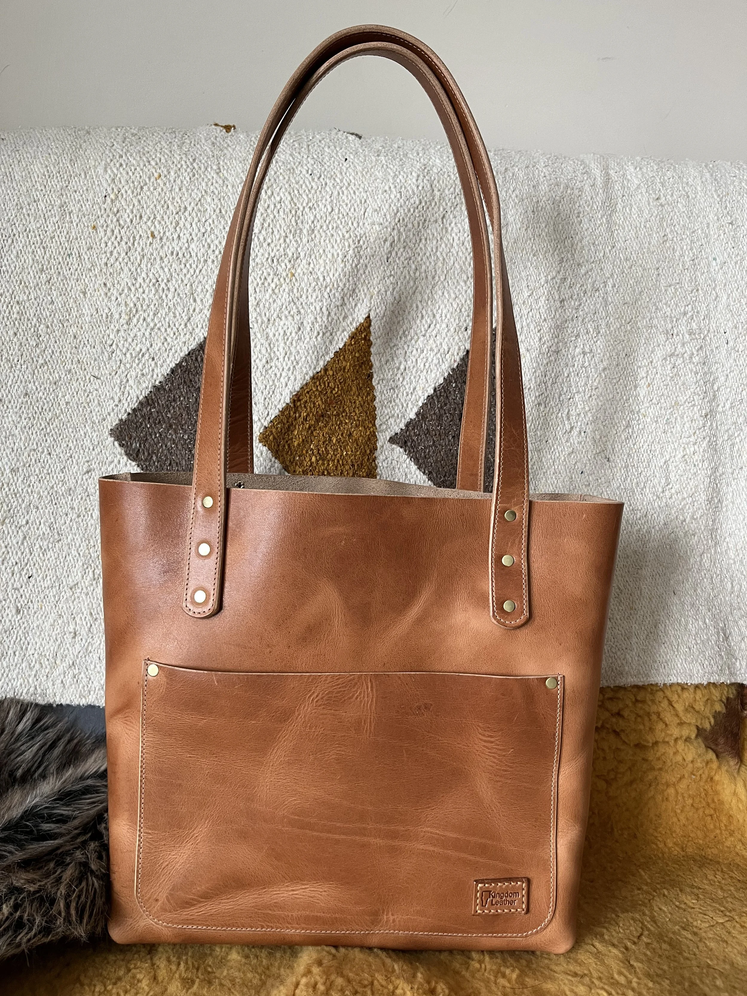 Handcrafted and designed by us in our small Vermont Studio. They are made with top grain leather and high quality brass hardware.