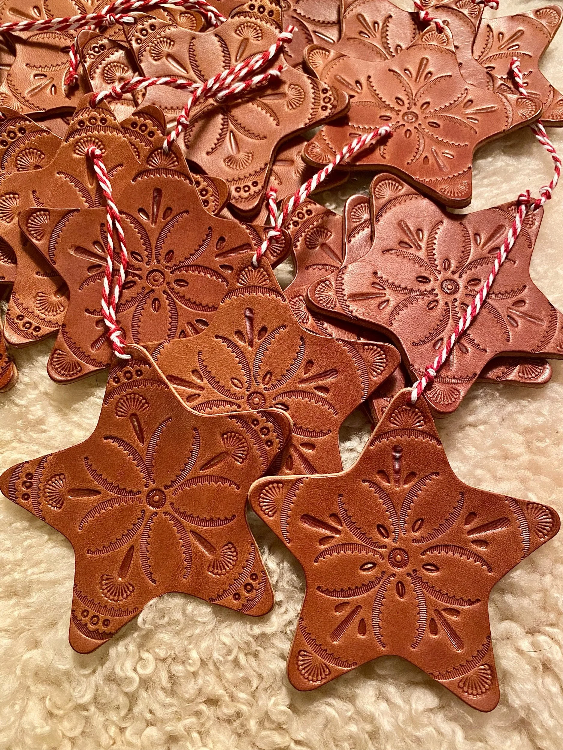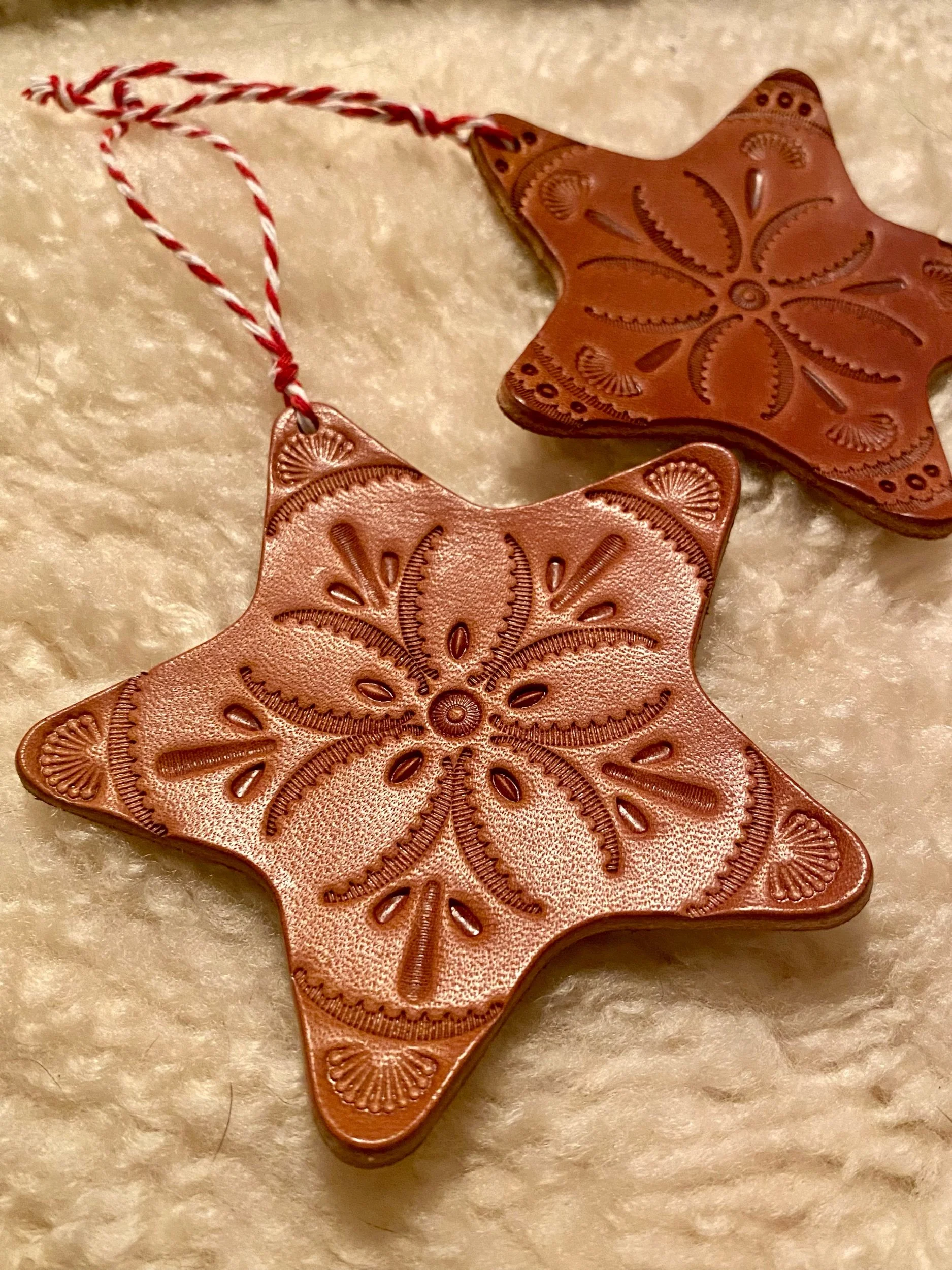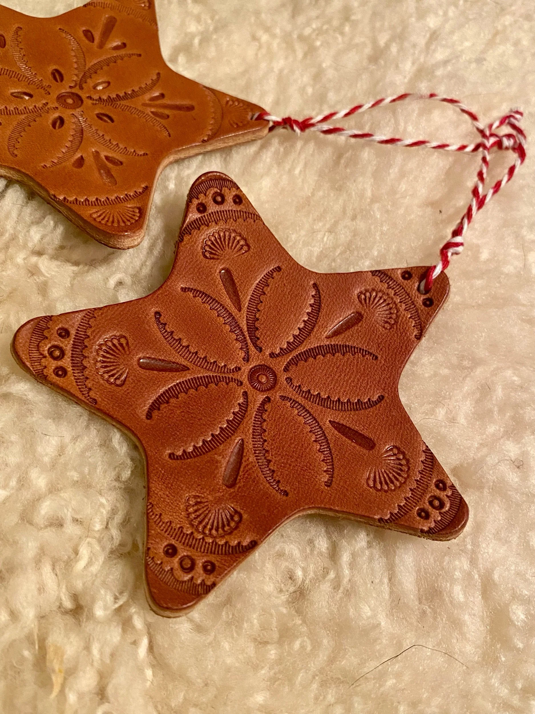 These beautiful Star Ornaments are made entirely by hand. Two options available for purchase color might vary slightly from pictures due to the natural variation in real leather hides..